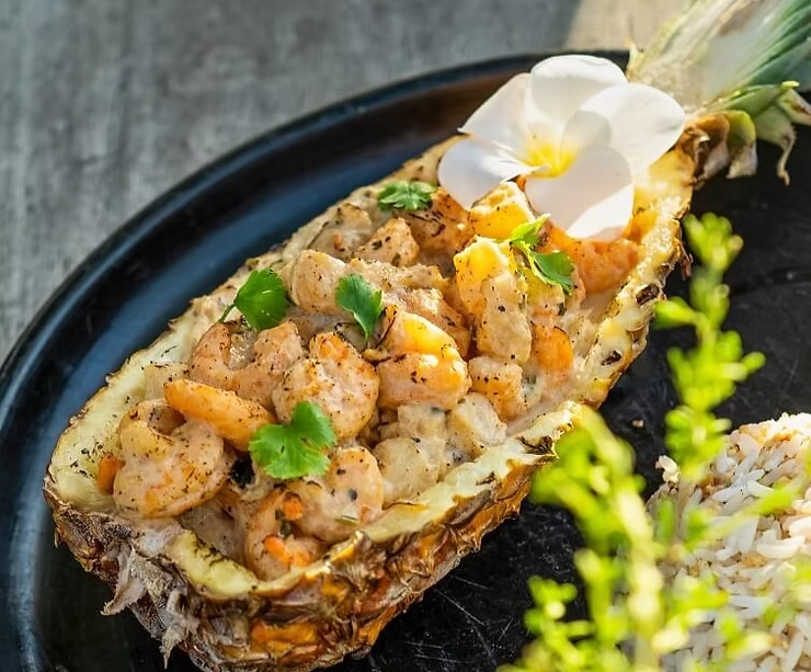 (Camarão no Abacaxi é boa pedida no almoço ou jantar)